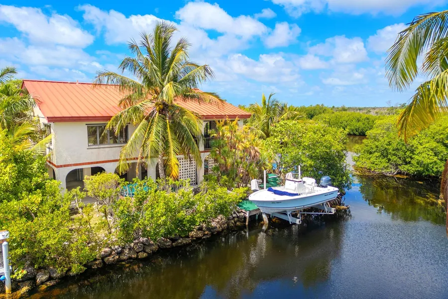 Set on a corner lot with 192 feet of canal frontage, this 2-bedroom concrete home with loft space offers a rare combination of privacy, water access, and functional design in the Florida Keys. The neighborhood also provides boat trailer storage for owners, a convenient feature that makes time on the water even easier. Situated within the National Key Deer Refuge, the property overlooks protected wetlands where native wildlife and migratory birds can be seen year-round. With a flow-through canal and a 12,000 lb. boatlift, quick access to both the Atlantic and the Gulf is always within reach. The elevated 1,840 sq ft concrete home is designed for comfort and usability. Hardwood and tile floors add character, while a dual-zone central air system and metal roof support lasting value. Storage is well-planned with generous closet space, and the screened porch opens the living area to canal views and fresh air. Outside, the in-ground pool and hot tub create an inviting space to enjoy evenings under the Keys sky. Set on a 7,938 sq ft lot, this property blends everyday practicality with perfect access to open water. Schedule a private showing today and experience how this home brings both freedom and function together in a remarkable Keys setting.