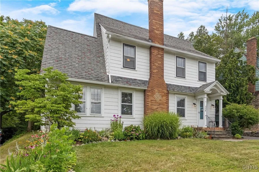 A beautiful and charming Dewitt Colonial welcomes its next owner. Sitting up a slight slope and overlooking the nearby neighborhood and school, you will find this restored classic with an inviting appeal. With original woodwork, built ins, and features like glass knobs, wood burning fireplace, and refinished hardwood floors, the home is filled with character. Fully remodeled kitchen with added counter space for a nice breakfast bar accompanies a full dining room which opens to the living room. A morning room bursting with plants receives ample light from its many windows & creates a space for relaxation. Upstairs are the 3 bedrooms, each with closets, the full bathroom, & a walk up attic. Outside you will find a new privacy fence, patio, & landscaping. Additionally, there is a two car garage with automatic openers & storage space. Central Air will cool you all Summer! Square footage is documented with appraiser measurements, 1,356 square feet.