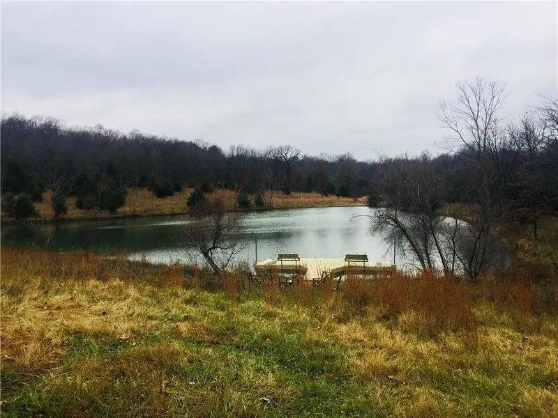 Perfect 70 acres m/l minutes from Overland Park. Stunning interior 2 Bedroom 2 Bath home has been totally renovated and will make the perfect home/vacation home or guest house once your country mansion has been built. Hunt the woods, walk the creek, fish from the floating deck in your almost 2 acre m/l lake. Several nice building spots. Fruit trees galore, garden spot, 30' X 50' metal building with concrete floor, heated and air-conditioned for your toys. Lots of Deer and Turkey. Walking distance to Somerset Winery. Paradise.