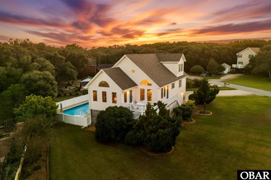 PRISTINE creampuff alert! This CENTRALLY LOCATED home in the heart of Kitty Hawk showcases ENDLESS IMPROVEMENTS in IMMACULATE condition. Welcome to Oak Run, nestled between the Ocean and Sound with easy access to each is a street full of supportive neighbors and local residents, ideal for year-round living or investment property ownership. You'll love the LIGHT & BRIGHT vibe of this LIKE-NEW home featuring SINGLE-LEVEL LIVING & SPACIOUS OPEN FLOOR-PLAN. All of the work has been done for you! FULLY REMODELED from top-to-bottom including Kitchen & all Baths, sparkling new flooring throughout, interior paint, all new window treatments, new lighting, and more! Entertain family and guests with a private 16x32 HEATED SALTWATER POOL, a 6 person Hot Tub, POOL TABLE, 2 more refrigerators and a 2nd washer and dryer set perfect for storing those poolside beverages and keeping the sandy beach laundry outside! ENORMOUS 2+ car GARAGE with WORKSHOP space is a handyman/car enthusiast's dream. The home's main level is OPEN and AIRY with CATHEDRAL CEILINGS, an expansive Kitchen, Dining and Living area combo with Fireplace, and lovely double glass barn doors that open to a sweet SUN ROOM The east-facing sun deck is perfect for taking in your morning SUNRISE SKIES with coffee or relax with dinner on the grill. Two of the 4 bedrooms are located on the main level including the large Primary Suite with walk-in closet and beautifully remodeled en-suite bathroom showcasing a dual sink quartz-topped vanity, gorgeous custom glass-door tiled shower and private linen closet. Rounding out this level is the newly added Laundry closet plus 2nd bedroom with its own private access to a full hall bath. Upstairs features a flexible Loft area plus 2 additional oversized bedrooms with large closets that also share a full bathroom. Dry entry from the garage into ground level Den with half bath make direct access to the pool a breeze! The home's vinyl siding/railings and pool fence keep exterior maintenance to a minimum year after year! Improvements include: Roof (2019), Kitchen remodel: cabinets doors/refacing, all New Appliances, new Kitchen Sink, Quartz countertops & faucet completed (2023). All New flooring (2021, some barely used), Laundry Room added to the main floor w/new Washer & Dryer (2021). New Exterior Door was added to Ground floor Den for direct pool access (2021). New doorway was added to Bedroom #2 to connect to Main level Hall Bath (2021). All New Bath vanities w/solid surface countertops, faucets, toilets, custom-tiled Master shower and lighting (2021-2022). New Hot Water Heater (2021), New HVAC (2023). New Pool Heater (2022), Salt-water Pool conversion (2022)New electrical panel was added to garage to accommodate RV power & generator hook-up. Must see for yourself how well this TURN-KEY GEM has been cared for!