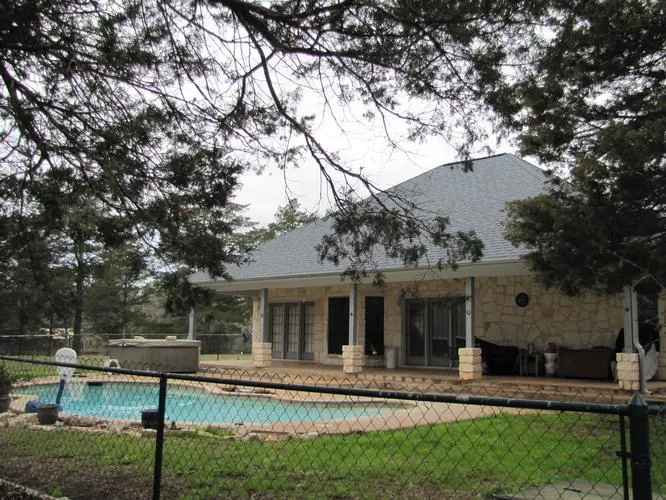 Pool Party at The Falls! Lovely stone home on a wooded lot on a very private street in the prestigious Falls Resort and Country Club in New Ulm, Texas. Nature thrives in this secluded golf course neighborhood. Privacy and beauty surround you and create a very special way of life. This home has 3 bedrooms and 2 baths and offers vaulted ceilings in the large living area, stainless appliances in the kitchen, a pretty dining room, and a sparkling pool with wonderful views to complete the picture. Large porch with ceiling fans enhance the back of the home. The pretty pool and decking are an added bonus to the property. 10 foot ceilings in the foyer and dining area, and a 15 ft. vaulted ceiling graces the living area make the house light and roomy. A nice kitchen with stainless appliances is ready for the cook! Dining area is separate and enhanced with stone columns. The master bedroom is spacious and has access to patio and pool area. Master bath has double sinks and a large walk in shower. The guest bedrooms offer built in desks and nice closets. Laundry room and garage offer sinks to help with clean ups. Two car garage has attic access and extra cabinets. This wonderfull property is perfect for retired couple, first home for couple, or weekend place for city dwellers. You must come see!!