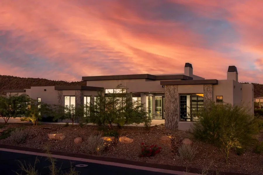 This stunning contemporary home situated in Blackstone Country Club exudes elegance and sophistication. All furnishings included! With exquisite modern finishes throughout, this brand new home offers breathtaking golf course and mountain views from the 12th Fairway. The 50-foot long heated PebbleTec pool is perfect for relaxation, exercise and entertaining. The kitchen is a chef's dream with glossy acrylic high-end cabinetry, gorgeous quartz countertops, and top-of-the-line Thermador and Sub-Zero appliances, 2 dishwashers and includes a hidden butler pantry with ample wine refrigerator. The attention to detail in this home is impeccable, featuring expansive windows that seamlessly integrate with the outdoor landscaping. Wait until you see this gem!