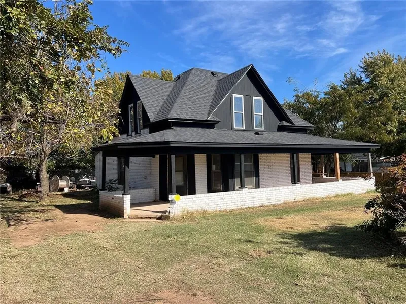 Welcome home to this charming yet completely rebuilt (still under construction for the last few details) 3-bedroom, 2-bath, 2-story residence, offering 1,600 sq. ft. of modern comfort and timeless craftsmanship. Rebuilt from the studs out, this home pairs the character of a classic design with the peace of mind of brand-new systems, finishes, and structure throughout. You'll love the freshly painted exterior, complemented by a welcoming wrap-around porch - perfect for morning coffee or relaxing evenings under the shade of mature trees. Several new windows fill the interior with natural light, highlighting the home's open floor plan and beautiful updates. Inside, the spacious living and dining areas flow seamlessly into a thoughtfully designed kitchen featuring contemporary cabinetry, sleek countertops, and modern fixtures - ideal for entertaining or easy everyday living. A downstairs study with built-in bookshelves adds the perfect spot for a home office or reading nook, while the beautiful wood detailing along the staircase adds warmth and character you'll appreciate every day. A full bathroom and laundry area are conveniently located on the main floor. Upstairs, you'll find bright and airy bedrooms with fresh paint, new carpet, updated lighting, and brand-new drywall and insulation, all reflecting quality craftsmanship and care. Outside, enjoy the spacious almost 1/4-acre lot, complete with a storage building for your tools or hobbies, and a secure underground storm cellar - offering safety and peace of mind. A new roof installed just last year means this home is truly move-in ready. Blending old-fashioned charm with modern updates, this property offers style, comfort, and security - all in one beautifully rebuilt package. About 60 days out from completion, a few finishes can still be chosen, including your pick of the kitchen countertop color. Please reach out for your private showing today!