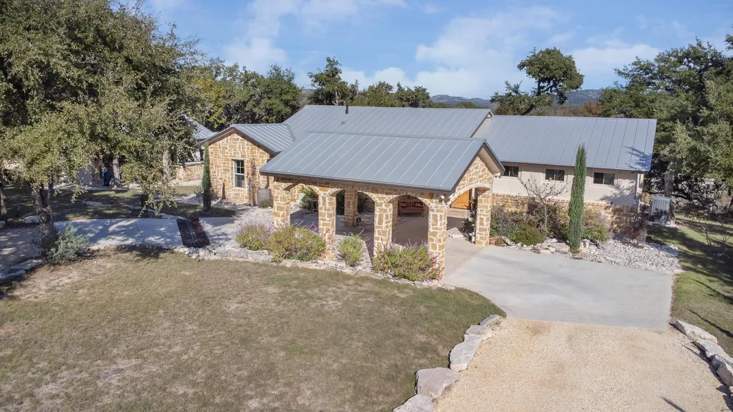 The outdoor areas are equally impressive. The lovely patio (with built-in hot tub) overlooking the Nueces River serves as an idyllic spot for morning coffee or evening gatherings, while the outdoor pavilion enhances the entertaining experience. Equipped with a fireplace, kitchen, and comfortable seating, it provides the perfect setting for year-round enjoyment, whether hosting summer barbecues or cozy winter evenings.