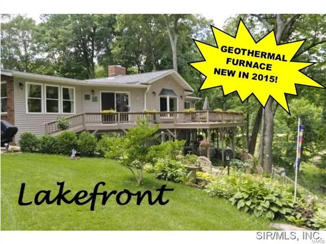 MAKE MEMORIES IN THIS BEAUTIFUL LAKEFRONT HOME LOCATED ON LAKE LOU YAEGER. 4 BR, 4 BA brick/vinyl ranch with walkout lower level. Beautiful kitchen with island and granite counter tops and recently remodeled bathrooms. An open and spacious floor plan on the main level as well as the lower level makes this an ideal home for entertaining guests. The property includes a covered, 2 boat slip dock and a floating deck with a driveway and stairway access to the lakefront. Large wrap around deck provides great outdoor entertaining and a grand view of the gardens and lake. You will find lots of extras in this home including an additional forced air heating system (seller does not use) and a garden shed, lawn sprinkler system & an extra building lot. Great investment. New hot water heater and geothermal furnace in 2015