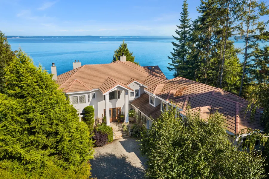 Captivating Puget Sound waterfront estate perfectly sited on 2.85 private acres with 125 feet of medium bank paradise. Tucked away on a quiet bay with panoramic views of the Sound, Whidbey Island, and the Cascade Mountains. Enjoy endless hours watching marine life, soaring bald eagles and the ever changing views of maritime life. Custom built in 1994 and expertly designed to capture water views from nearly every room. Classic floor plans with huge living spaces while retaining warmth and charm. Grand double door entrance and wide open foyer with direct views of the water ahead. Dramatic spiral staircase. Formal living room, parlor and dining rooms are inviting with glass french doors. Huge family room with custom bar area and access to stunning view deck. Warm, rich wood floors and trim. Grand fireplaces and marble accents. Large chef's kitchen with large prep island, plenty of counter space, breakfast bar, oak cabinets, hardwood floors and butler's pantry. Eating area/ additional family room and cozy woodturning stove. Spacious master suite with cozy fireplace, picture windows with large views, view deck, en-suite sumptuous bath with marble floors, double vanities, large soaking tub, huge walk-in shower, enviable walk-in closet. Three additional en-suite bedrooms with views and individual charm. Large office (could be additional bedroom) and very large bonus room and attached bath. Separate living quarters downstairs with beautiful kitchen, living room with fireplace and bedroom. Full bath. Water views and french doors to large covered room with indoor pool and spa and outdoor patios. Custom wine room, extra storage rooms and spaces, plus indoor shop area. Large 4 car garage Detached 1500 sq ft shop with 220 electricity Two additional single family homes provide extra rental income. Shared septic system is separate from main home. Individual private well. RV hookup. May be possible to subdivide rental homes from main home. Peaceful Peninsula living. Ideally located within short distances to charming Port Townsend, Port Ludlow, Kingston, Poulsbo and Bainbridge. Gateway to the Olympic Peninsula. 1500 sqft shop. 2 separate rental homes.