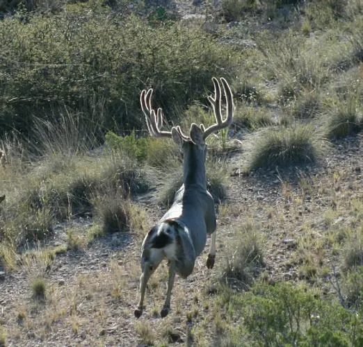 3069 acres about 15 miles south of Fort Stockton with over 3 miles of hwy. frontage. Property is rolling with elevations up to 3450 ft. There are some awesome views with excellent building sites. There is already a nice hunting lodge with over 2000 sqft. and a pond just out the back door. This ranch is loaded with mule deer, javelina, and lots of blue quail. The property is completely fenced and is equipted with 2 water wells, and has minerals available.