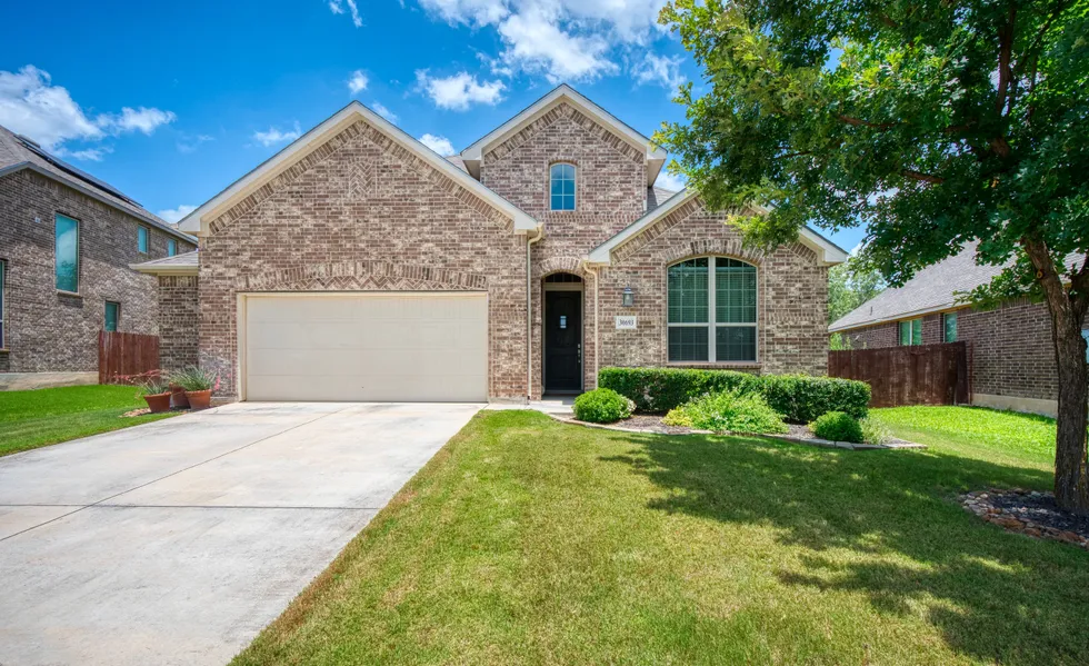 This single story with tall ceilings and open floor plan is such a great entertaining home for family and friends! Four bedrooms (one can be a duel master), three full baths plus a study! This pristine home backs up to the beautiful Johnson Family ranch land. Upgraded white cabinetry throughout, designer counters in kitchen, gas cooktop, tile backsplash, large island with farm sink and bar seating, stainless appliances. Hardwood flooring, 2" faux wood blinds, water softener, full sod and sprinkler. Oversized 2.5 car garage, private backyard with covered patio! Expanded master bedroom and extended patio. So many extras. Onsite Johnson Ranch Elementary School, onsite EMS, tons of other amenities including community pool, clubhouse, park/playground, jogging trails, sports court. A Must See in highly sought after Johnson Ranch.