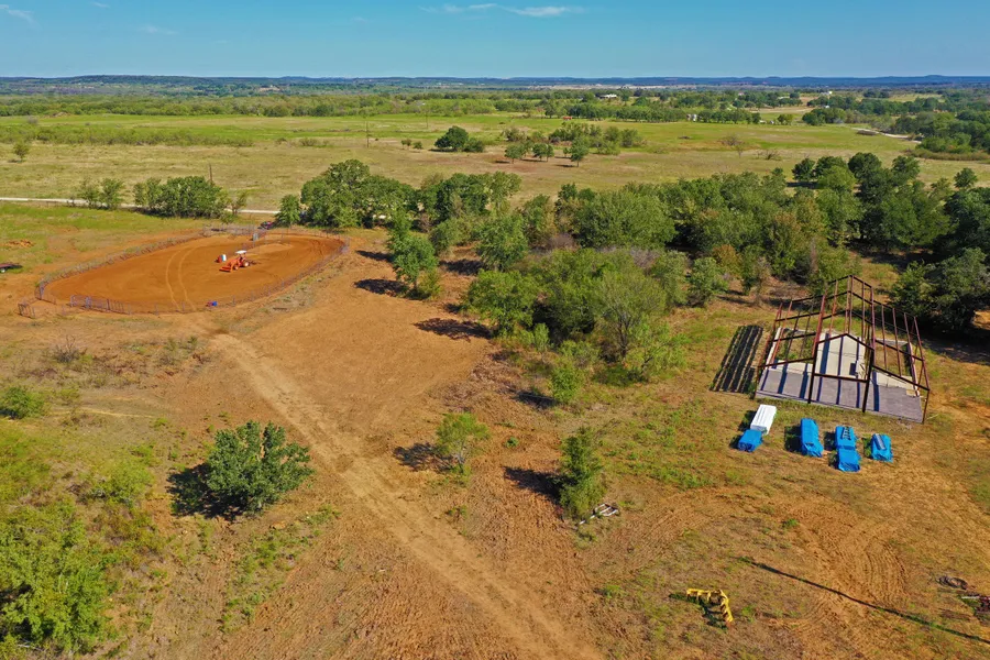 Perfect 25.42 acres with partially built barndominium just outside Jacksboro, TX. The property is heavily wooded on the east side, with the majority of the property being open on the west. The property has a water well (6 gpms), electricity and a septic system. The partially built barndominium has a 75X45 first floor footprint, with a planned 50X15 second story living space. The first floor is designed for 1,125 SF of living space (master bedroom, living room and kitchen) and an additional 2,250 SF for 6 horse stalls, utility room, tack room and storage room. The framing wood is included (see blue tarps in pictures). The property has one stock tank. The property has its Ag Exemption. Assumable note with Capital Farm Credit with low-fixed interest rate contingent on buyer approval. Asking price: $395,000