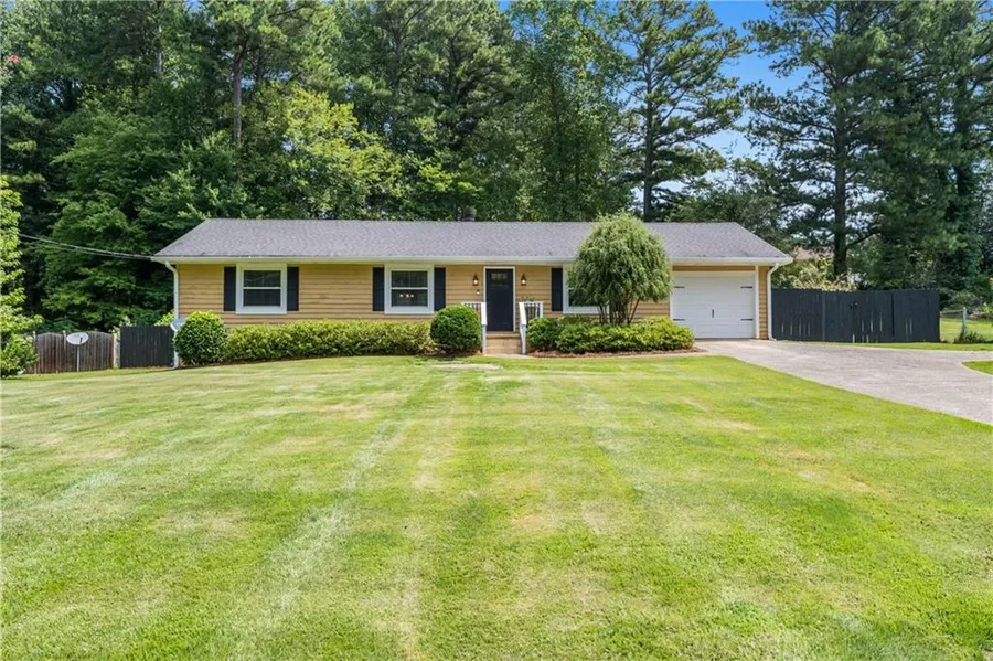 Welcome to 3070 Mars Hill Church Rd! Acworth is a wonderful place to live & still offers hometown charm! No HOA! Fabulous area & Top school district! Spacious great room features cathedral ceiling & wood burning rock fireplace with mantle. Renovated = New lighting & ceiling fans, All new interior paint, updated bathrooms with new vanities, tile surround & new tub in primary bathroom. French doors from dining area overlooking huge patio & level, fenced backyard ready for play & grilling. Swing to remain. Plenty of room to add a pool or outdoor shed. Recently serviced septic tank & drain field lines located in front yard of property. All insulated windows, architectural roof, & new water heater means you can simply enjoy home. Kitchen features stainless appliances, updated white cabinets, glass backsplash, solid surface countertops, pantry and huge window with great view of backyard - light and bright! Home offers 1300 square feet plus an additional 312 square feet in garage with entrance to kitchen and separate door to backyard. Long, flat driveway provides great parking for you or your guests. Lake toys? You have the space!. Walk in closet in primary bedroom. Additional bedrooms have large closets as well - Plus three additional closets with wood shelving offer great storage! Laundry located in hallway from kitchen. No carpet -- all vinyl tile = low maintenance. Happy to assist with any questions. Welcome Home.