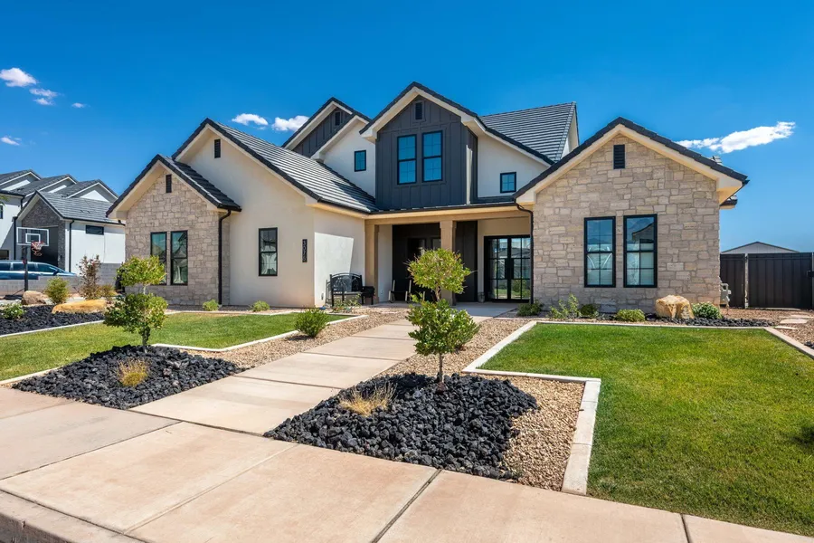 You are not going to want to miss this home! Gorgeous, custom floor plan with excellent curb appeal. This home features 6 beds 5 baths and 4220 sq ft. Beautiful double doors at the entry, custom accent lighting and trim, engineered wood floors, custom cabinets to the ceiling, oversized fridge/freezer, high end appliances, nice pantry, spacious mud bench area, large laundry room with lots of cabinets, sink and drinking fountain complete the main level. With a temple view from the primary suite and a guest bedroom with private access. Upstairs you'll enjoy 4 bedrooms, 3 with en-suite bathrooms, a spacious loft area including built-in cabinets and possibility of so much more! Enjoy an outdoor oasis complete with a heated pool/spa, in-ground trampoline, beautiful landscaping, and spacious covered patio. A huge 4-car garage with extra height for a boat.*All information is deemed reliable but not guaranteed, buyer to verify all.