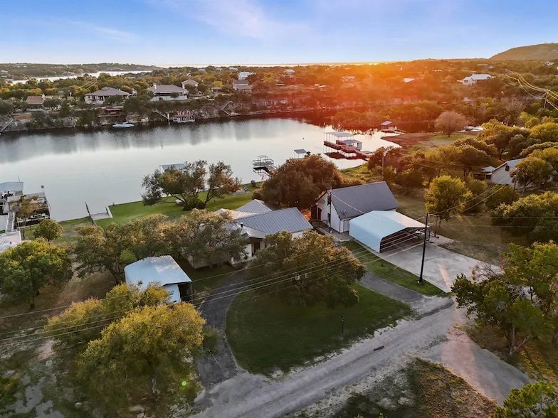 Lake Buchanan Waterfront Retreat Fully Reimagined & Move-In Ready! This one-of-a-kind waterfront property on Lake Buchanan East perfectly blends modern comfort with relaxed lake living. Originally built in 1986, the home was completely taken down to the studs and rebuilt in 2018 including all new plumbing, electrical, roof, HVAC, and finishes throughout. This one-level home boasts a vaulted living room with center beam and wood burning fireplace anchoring the open-concept living with kitchen area featuring a gas range, sueded granite countertops, custom soft-close painted cabinetry, delightful pendant lighting over the main island/breakfast bar with tucked-in seating and tile floors throughout. The split floor plan offers a primary suite with a wrap-around walk-through closet connecting directly to the laundry room. Additionally, two bedrooms and one bathroom round out the home. The separate guest apartment includes its own washer/dryer, softener system, and full bath ideal for guests, multigenerational living, or short-term rentals. Upstairs, you ll find additional sleeping space, a sitting area, and space to add a half bath, if desired. Outdoors, enjoy multiple covered carports for boat/RV storage, a workshop in garage, and storage shed. Two septic systems (one per structure) are each sized to allow an additional bedroom. The property features a private boat launch and calm cove frontage-perfect for kayaking, fishing, and small boats. Great water levels right now and priced to sell at $798,000!