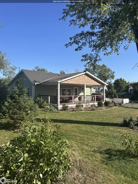 Wonderful opportunity for starter family or retirees as this home has maintenance free exterior, metal roof, two nice covered decks & nicely landscaped yard & paved driveway. Everything is on one level including laundry room. Lovely kitchen with eating bar & much cabinetry with appliances included. A nice feature to this home is the double deep, double wide heated garage plus additional tool shed. There is a rain water catch system set up for landscaping which will remain.