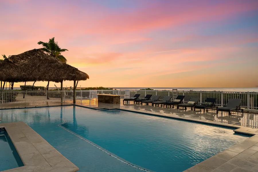 Experience refined oceanfront living on sought-after Duck Key. This double lot estate offers 138 feet of protected deepwater dockage, complete with a solid concrete seawall designed to accommodate a sportfishing yacht, multiple center consoles, and all of your waterfront lifestyle needs. A true boater's paradise, this property offers both privacy and exceptional access to the Atlantic Ocean. The fully remodeled residence is constructed of concrete with a new roof. Inside, seven spacious bedrooms and six bathrooms provide ample accommodations for family and guests. Coastal-inspired interiors feature wood-look tile flooring throughout, woven statement light fixtures, and soaring ceilings with exposed beams and pecky cypress accents. Expansive impact windows and doors frame sweeping ocean views, bringing natural light into nearly every room. The gourmet kitchen anchors the main living space as the heart of the home, with a striking 12' island that creates the perfect setting for gatherings. Outfitted with top-of-the-line appliances, this space is equally suited for everyday living with family or hosting unforgettable evenings of entertaining. Spa-like marble bathrooms further elevate the home, blending comfort with luxury. Designed for both style and function, the property also offers a rare 4+ car garage and abundant storage. Outdoors, a sparkling pool invites afternoons in the sun, while the expansive double lot offers unmatched opportunities for expansion. Whether envisioning a private guest house, a tennis or pickleball court, or exploring the option to build and sell, this rare property provides endless possibilities for both personal enjoyment and investment potential—an uncommon luxury in the Florida Keys. Balancing modern sophistication with coastal simplicity, this sanctuary captures the essence of waterfront living from sunrise over the Atlantic to evenings by the water, in one of the most desirable neighborhoods in the Florida Keys.