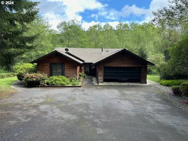 Welcome to this beautiful cedar residence in a tranquil wooded setting. This open concept custom home is nestled in the trees with sounds of water from the flowing creek and Winchuck River lulling you to sleep. Take your morning coffee on the large sunny deck only five miles from the ocean, but away from the coastal fog. The great room is large with tons of windows and a brick hearth with wood stove in addition to the heat pump. The gourmet kitchen has lots of cabinets, built in appliances and a a seating island. The beautiful primary suite has a walk-in closet and large bath with jetted tub and shower. The second bedroom is a nice size, but the third bedroom is surprisingly large with a closet that has a built in desk perfect for an office. There is an attached two car garage and lots of space to park your RV or boat. A huge workshop that's 24' across and 36' deep and tidy greenhouse also sit on the property. This unique home is available for appointments only.