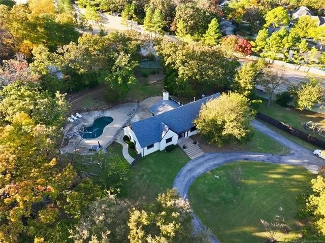 Extremely Rare find! Amazing One level full stucco home situated on an unplatted 1.24 acres in South Tulsa & Jenks Schools. Truly an Entertainer’s Dream Home, this house is made for entertaining & get-togethers! Unbelievable Chef’s kitchen with high-end appliances including Commercial 6 Burner Dacor gas cooktop & Stainless vent hood, Icemaker, Bosch Double oven & dishwasher, Galley Sink with workstation in HUGE Island with seating & built in Electrolux Column set 66” Refrigerator/Freezer. Beautiful glass cabinetry over the dry bar with beverage fridge. Nook has wood burning fireplace & ceiling to floor windows overlooking the back yard. The Kitchen opens to Living & Formal Dining room with built-ins. Pantry/home office has double barn doors, tons of storage and countertops for party prep as well as daily living. 4 bedrooms plus Study. 3 Full baths. Fully fenced terraced back yard with gorgeous saltwater pool & huge patio. Beautiful towering Mature trees surround the home. There is plenty of room to roam, have a garden or play. 2 Car garage located in basement with storage area. Nice circle drive as well as plenty of parking for you and your guest. No HOA. Situated off 71st St on Private Street near S. Harvard Ave.