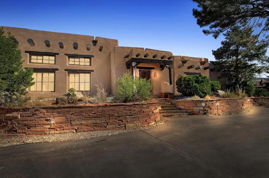 MLS #6758123 - Abundance of charm in this this custom built, Santa Fe style, adobe rammed earth home on 2.56 pinon treed acres with stunning views of the Collegiate Peaks and Arkansas Valley. Sustainable, environmentally friendly construction features stuccoed exterior, white plastered interior, beautiful viga roof with herringbone latilla ceilings, foyer waterfall feature, elegant India slate floors and radiant in-floor heat throughout. Spacious great room has lots of natural light, sunken living area, 15' ceilings, wrought iron chandelier, built-ins, window seat and new pellet insert. Gourmet kitchen offers oversize eating/work island, wormy-maple cabinets, granite countertops, built in wine rack, office area and newly refinished hard white maple floors. Separate dining or sitting room with corner kiva and double maple doors opening to breakfast patio with southwestern xeriscape garden. Master suite is complete with sizeable bedroom, kiva, 5-piece bath, walk-in closet, covered private patio and office. Guest quarters offers two additional bedrooms, plus a full and 1/2 bath. Inviting outdoor living areas include main courtyard with patio and hot tub and steps up to enjoy dramatic Mount Princeton sunsets. Boiler was replaced in 2018. New roofs on both house and garage in 2014. Well and covenants allow for watering of up to 3 horses. 3-car detached garage with separate storage area.