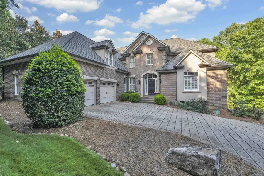 Discover luxury living in this beautiful 5 bedroom, 4 ½ bath home in Carolina Country Club. Located on the 10th hole of the golf course, the view from the deck of this house will definitely want you to live here. The main level features a great room with fireplace and built in cabinetry, cathedral ceiling and glass doors leading out to brick deck; eat in kitchen, dining room and spacious master suite with separate vanities, jetted tub and walk in shower. Upstairs, you will find 3 generously sized bedrooms and 2 bathrooms. The fully finished lower level is an entertainer's dream featuring a billards room, custom built bar with seating, lovely stone fireplace and dining area which opens out to covered patio with outdoor grill. Also on this level is a full bathroom and a flexible room ideal for exercise or 5th bedroom. This level also includes a third garage. Don't miss your chance to own this exceptional home where luxury meets lifestyle.