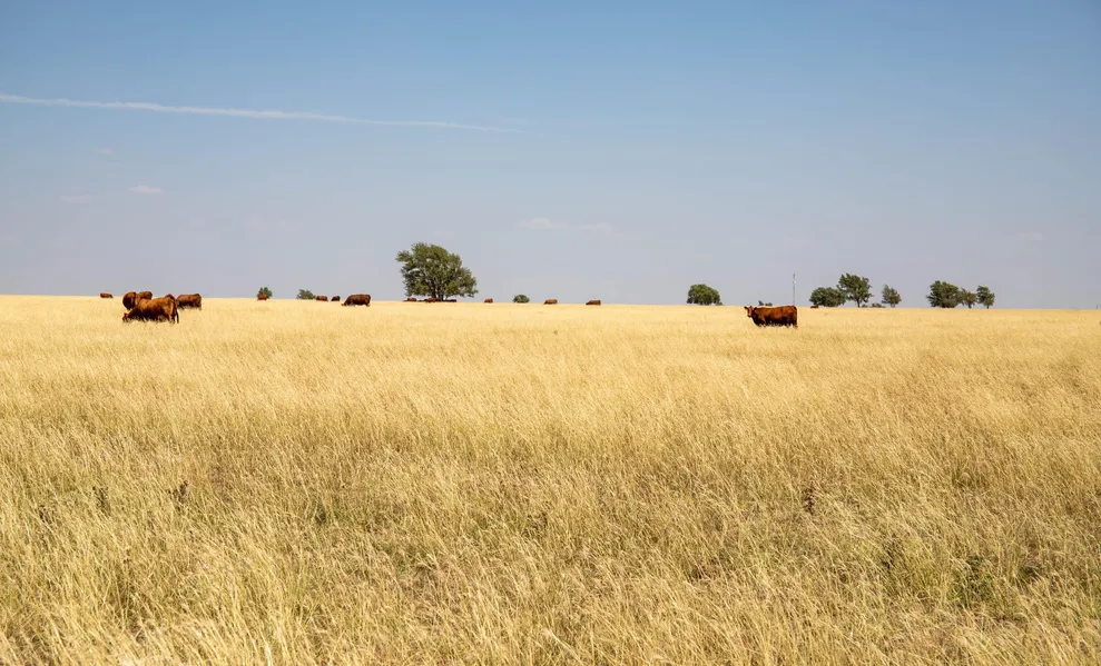 The grass cover is primarily bluestem. There are scattered elm trees that provide good shade for livestock in the summer months.
