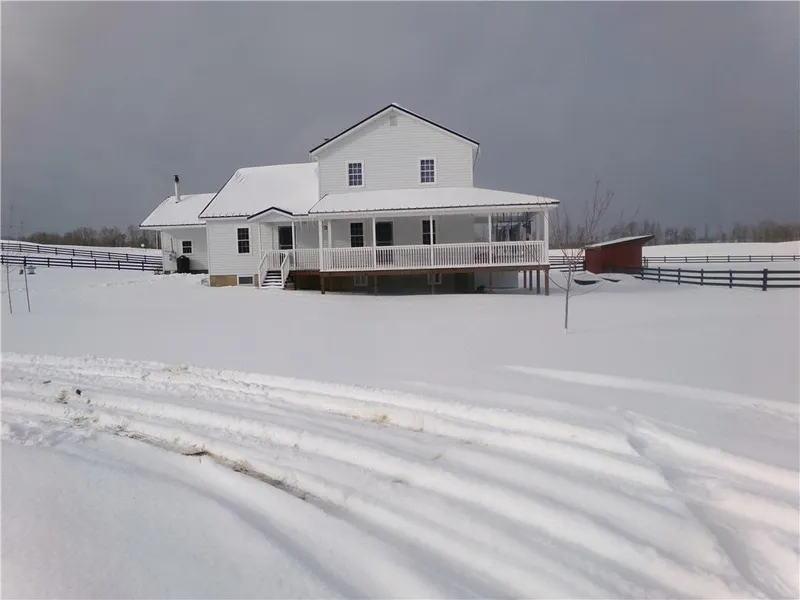 This farm includes a new two story house built in 2022 with full basement, wraparound porch, side walk, metal roof and siding. Four bedrooms upstairs, one downstairs, large kitchen w/ pantry, large living room and storage rooms. Nice large entryway.