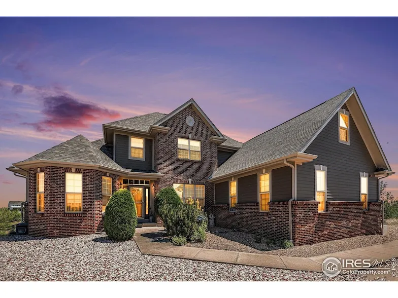 Exquisite living awaits in this expansive 2-story home boasting 5 bedrooms, 4 baths, and an oversized 3-car garage, all situated on a stunning 2-acre lot. Unwind in the luxurious main floor primary suite featuring a spa-like 5-piece bath with a jetted tub and dual walk-in closets. The heart of the home is the custom gourmet kitchen, a chef's dream with granite countertops, a gas range, double oven, and a convenient veggie sink. Entertain effortlessly in the open concept layout that seamlessly blends the eat-in kitchen with a formal dining room, perfect for gatherings of all sizes. 5 interior speakers in the living room area and two speakers on the deck provides the perfect sound throughout the home. Cozy up by the gas fireplace or step outside to the covered patio and composite deck, where breathtaking views of Longs Peak and the city skyline will provide stunning sunsets. The finished walkout basement offers additional living space with a workshop and rec room, ideal for hobbies or movie nights. Luxurious upgrades abound throughout, including newly finished hardwood floors, new carpeting, cathedral/vaulted ceilings, 9ft ceilings on the main floor with 10ft ceilings in the basement, granite countertops throughout, and brand new stainless-steel appliances. For peace of mind, a new class 4 shingle roof installed 2024 complete with a transferrable warranty. This exceptional property offers the perfect blend of elegance, functionality, and abundance of style and design. Don't miss your chance to own this piece of paradise!