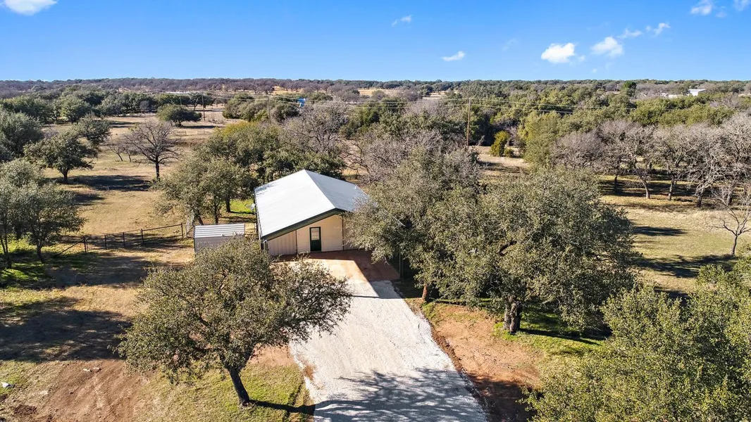 6.2+/- Acres and 1 bed 1 bath Barndominium located minutes from Marble Falls and Johnson City in the town of Round Mountain. Most of the cedar has been removed and land is full of beautiful oak trees. Great soil and would work great for keeping horses and other livestock. Great access off of Old Marble Falls Rd(CR 305). There is a nice seasonal pond on the property as well. Newly constructed road to the house. The property is fully fenced and cross fenced. This is a rare find!