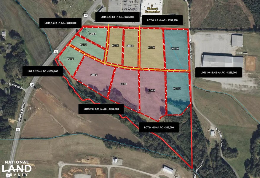 Strategically positioned, the property shares a contiguous border with Walmart, featuring two proposed access points from the Walmart parking lotideal for driving customer traffic and visibility. Of the 52 acres, 38 acres are development-ready, with all major utilities already in place.