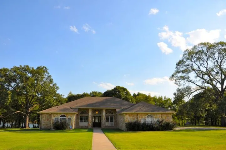 A winding drive canopied by oaks leads you to this awesome Granbury Stone home. Step inside the majestic entrance into a great room with 16 foot ceilings, crown molding & a wall of windows to soak in a tree studded view of world famous Lake Fork. 4 BR 2.5 Bath Custom home with fabulous kitchen/family room & 3356 sq feet of living area loaded with other amenities. There's an 832 sq foot 3 car garage, plus a nice 40x80 insulated metal shop bldg w/commercial doors. You have your own private boathouse with 2 bays, electricity & water for cleaning up after a long day of bass fishing. There is 2900 feet of lake shoreline, one-half mile of pipe fencing and 2 ponds. Originally priced at $878,000 now priced at $797,000!