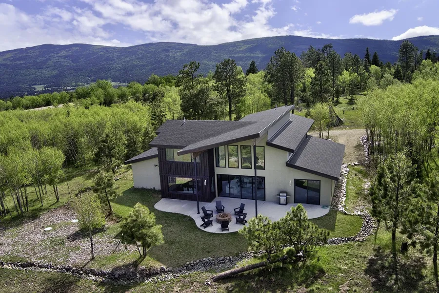Experience the pinnacle of modern mountain living in this thoughtfully designed retreat, built by Lindsey Custom Builders in 2020. Located in the heart of the Valley of the Utes in Angel Fire NM. This home has 4 spacious bedrooms, 4.5 luxurious bathrooms, and nearly 3,000 square feet of refined living space, 31 Beaver Loop blends rustic charm with contemporary style in a setting that's as peaceful as it is inspiring. Inside, you're welcomed by a warm, open-concept layout with soaring tongue-and-groove ceilings, rich wood beams, and expansive windows that frame the surrounding forest. A striking propane fueled fireplace anchors the living space, while wide-plank wood floors and sleek finishes elevate the home's modern mountain aesthetic. The chef's kitchen features quartz countertops, stainless steel appliances, and ample room for entertaining-perfect for apres-ski evenings or quiet weekends in. Each of the four bedrooms is designed with comfort and privacy in mind, with spa-style bathrooms that offer a tranquil retreat after a day of adventure. Through the stacking sliding glass door, step outside onto a concrete patio to breathe in the crisp alpine air, watch elk pass by while you enjoy the propane fire pit or simply enjoy the peace of your forested surroundings.
