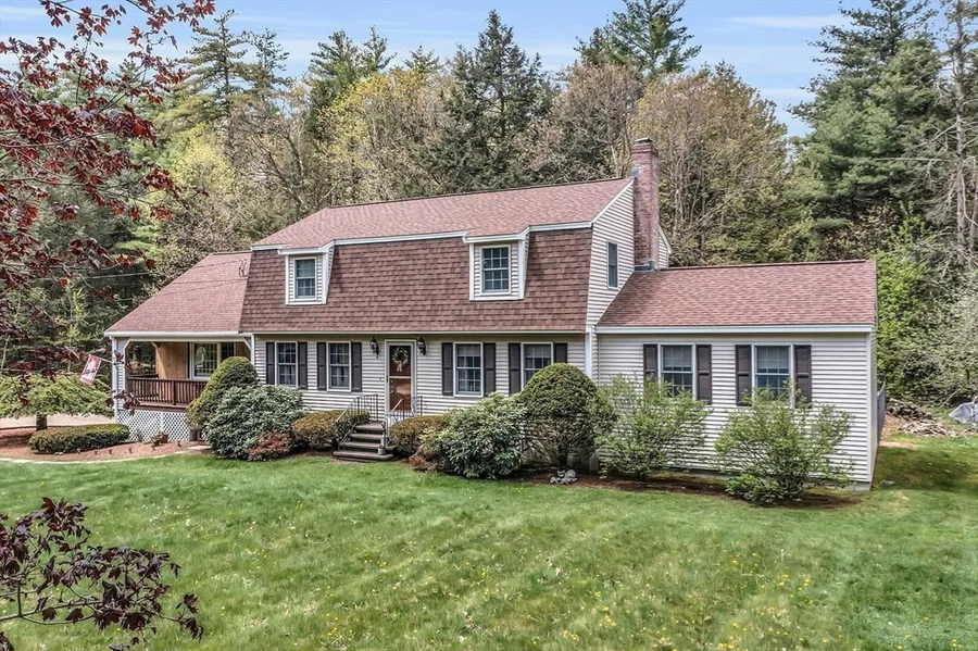 PRIDE OF OWNERSHIP!! Take one look and fall in love with this outstanding 2,740sqft Gambrel set on 3 ACRES bordered by acres of town owned land in back and side! Features include the NEW KITCHEN REMODELED 2023 with black stainless Farmhouse sink, custom island with seating, oversized built-in hutch, an abundance of cabinets, pantry & gorgeous HW Floor open to Dining Room, 4 Bedrooms with PRIMARY SUITE ON 1st FLOOR featuring walk-in closet and full bath w/jetted tub, 3 Full Baths, 2-CAR GARAGE, Farmer's Porch in front, wood Deck in back, The formal Living Rm has fireplace w/woodstove insert. The first floor Family Rm offers skylights, vaulted ceiling, woodstove and Andersen door to outdoor deck and screenhouse. FIRST FLOOR LAUNDRY ROOM. Many recent upgrades - NEW carpeting installed May 2024 in 2 upstairs Bedrooms/Hallway/Stairs. NEW ROOF 2022. Boiler 2008. Water Heater 2020. Generator Conn. 7-Zone Irrigation system. Pearl Hill State Park & Willard Brook State Forest nearby.