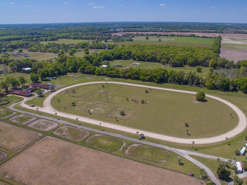 INCOME PRODUCING! Turn-key 31 acre Training Center complete with two 20 stall shedrow barns with tack rooms and full baths, PROVEN 1/2 mile irrigated track with aluminum railing along with a 4 horse starting gate and track conditioner included. 21 paddocks with water, new 6 horse Eurocizer and round pen. Lovely 4/2 home refurbished in 2000 with office, spacious Florida room and carport. Also two additional living quarters. Amenities refurbished in 2012. Great income opportunity! Bring your horses and begin training.