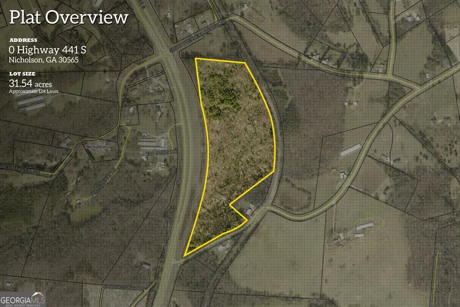 Commercial acreage available on Hwy 441 in the city limits of Nicholson! 2 parcels, 013 022f is a 6.03 acre corner lot on Berea rd with a turn lane and curb cut at the intersection. 013 022 is a 25.42 acre parcel that has rail frontage in the back and long frontage on Hwy 441. Zoned HB which allows for many commercial uses, and priced under $20k/acre which is an amazing deal for commercial acreage! Call the listing agent with any questions!