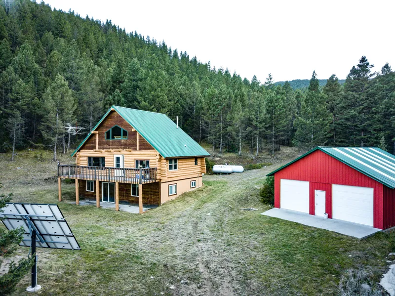 Nestled within the pristine wilderness of Montana, this remarkable property spanning 31.5 +/- acres offers amazing outdoor adventures. Boasting private access that borders a square mile of state land (to the East) and vast public lands in the general area. Lace up your boots or saddle that horse and explore. The property is graced with a 1,800+ square foot, three-level cabin that affords breathtaking views of the majestic Elkhorn Mountains. The cabin has a solar array, batteries, and a backup generator. Two propane tanks that convey provide plenty of fuel for those cozy winter nights. There is a spacious loft, an open concept main level with a bathroom, two bedrooms, and a bath downstairs.A private access road meanders through a vast ranch leading directly to the property, a privilege extended to only a handful of landowners. This seasonal property requires winter travelers to utilize 4x4s, tracks, or chains for access during a portion of the winter. Conveniently located just 15 miles from the charming town of Boulder and a mere 45 miles from the state capital of Helena, you have the best of both worlds at your doorstep. Helena offers a full range of modern conveniences and cultural amenities. Beyond being an outdoor paradise, the region is renowned for its exceptional fishing. The Boulder River is just a few miles away, and within an hour's drive, you'll find numerous lakes and blue-ribbon trout river systems. This property is more than land; it's an opportunity to embrace the untamed beauty of Montana and live in harmony with the wilderness. This area's captivating hunting, fishing, and natural wonders await you. The tract's large Fir stand and boulder outcroppings are stunning. Don't miss your chance to claim this extraordinary haven for your own. All distances, square footage, and acreages are approximate and must be verified by the buyer/buyer's agent. Approximate square footage includes the loft area (non-conforming) and basement.