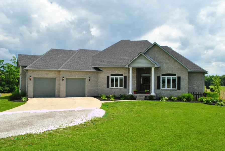Custom, sprawling brick ranch with full finished walk out basement, on 31.7 A. in Northern Putnam Co. Lg. Foyer, great room with gas fireplace/ cathedral ceiling, formal dining, open staircase, large eat-in kitchen w/all stainless app. incld. Separate pantry & laundry. Master Suite on main with spectacular bath and walk-in closet. Lower level boast family rm w/FP, bonus rm, 2 Bed & 1 bath PLUS Den/study! Property Features 60x160 Barn with 6 stalls and indoor arena, tack room PLUS elec. & water. There are currently 17 acres in row crop ground and 10 acres in grass pasture with 4 board fence.
