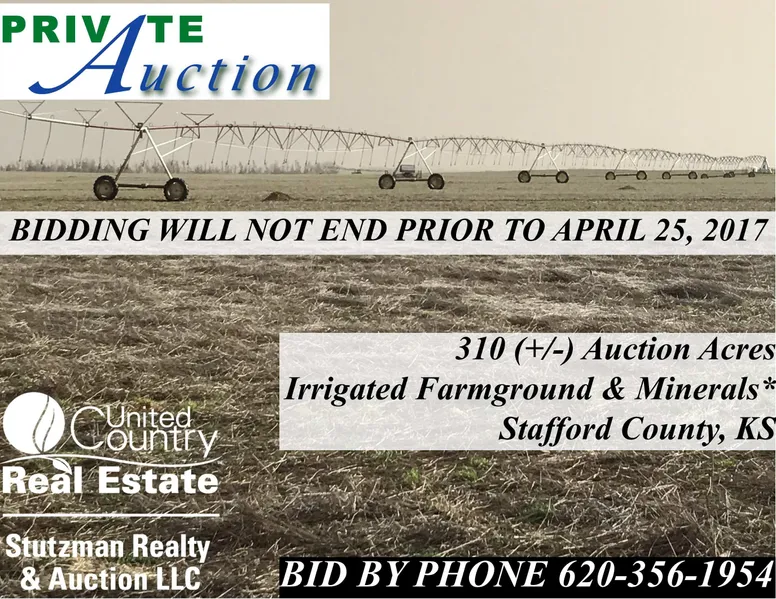 Available are 310 +/- Acres of Irrigated Farmland and Minerals* in Stafford County, KS.