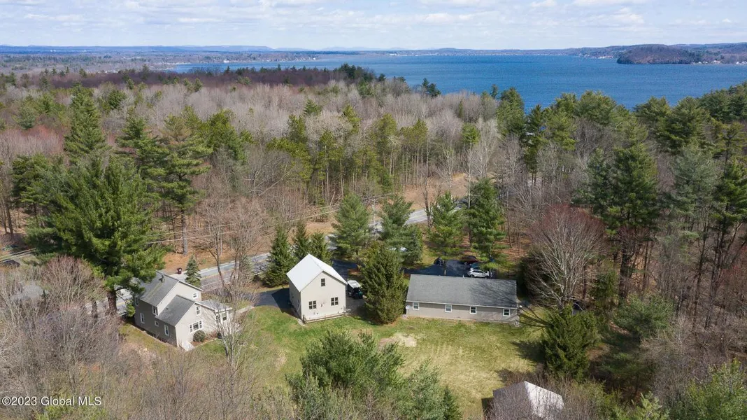 Views of Saratoga Lake and just a short stroll away! Use for short-term, long-term rental for duplex and/or SF as well as heated garage. Rent some, rent all or enjoy as a multi-family compound. Could finish 2nd floor in garage for a 4th living space. Main house has beautiful hardwood/wood floors t/o. 1st floor bedroom and full bath. 3 bed + office (or 4th bed) 1.5 bath, 1380sf. Charming details down to the Bennington Pottery doorknobs. Brand new furnace. 50 yr arch shingle roof, 14 yo, on duplex and SF. Side by side duplex blt 1987 has 2 bed/1 bath/laundry hook ups, 900sf ea. 24x24, 2 story heated garage w 10' & 11' ceilings. Another 20x24 outbuilding. Circular driveway. Public water avail at road for all 3 units. 4 electric meters. 2 wells. 4800sf parking. One-of-a-kind property!