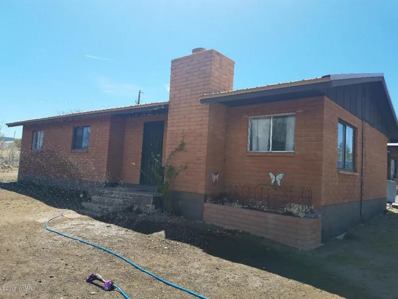 This slump block home is nicely situated on a corner lot and includes the lot behind. With the extra land, you have room for your horses. Home has a metal roof, woodstove and an open kitchen area.