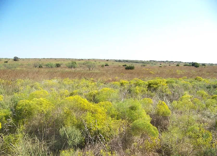 The Dry Creek Ranch is fairly level to gently sloping, with elevations ranging from approximately 1,175' to around 1,300'. The property typically drains towards Pinnington Creek and Dillingham Creek, both of which are seasonal creeks. Cover is provided by mesquite principally, with a little scattered cedar. Overall, the ranch has a very open appearance with a few thickets of mesquite. The Dry Creek Ranch is fenced and cross-fenced into approximately 4 main pastures. Fences are generally good to average condition, being primarily of steel and barbed wire construction. There is a shared set of pipe pens located on the western portion of the property.