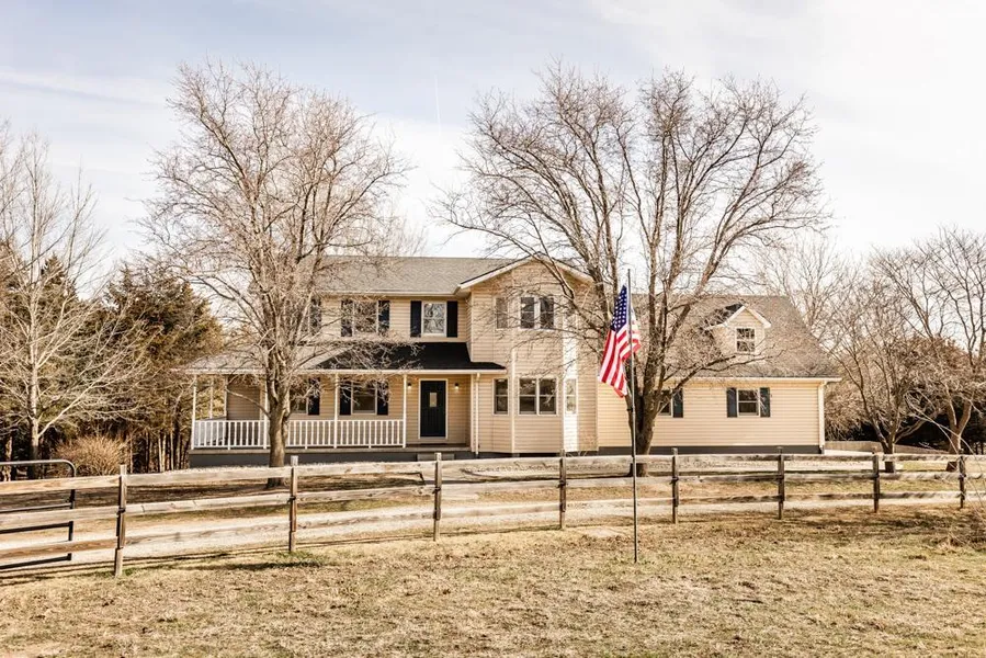 This 4 bed, 4 bath house sits on 17 acres just miles from Milford Lake. The 2 story house has just over 2,300 finished square feet of living space as well as an unfinished walk-out basement. The house has had many recent updates including a covered back deck with beautiful views! The kitchen has custom cabinets with an island and new flooring. The large laundry/mudroom has plenty of extra storage space. The primary suite has a large bay window, walk-in closet, and full bath. The upstairs has an extra bonus room that would make a great home office or nursery. The two-car attached garage also has a large, climate-controlled attic storage space. The acreage has new electric perimeter fencing installed along with a barn/loafing shed for livestock. Don't miss out on this rare property! It has all the qualities of rural living, but is only minutes away from town, schools, and recreation. For additional information, disclosures, or to schedule a showing, contact Trent Siegle at (620) 767-2926.