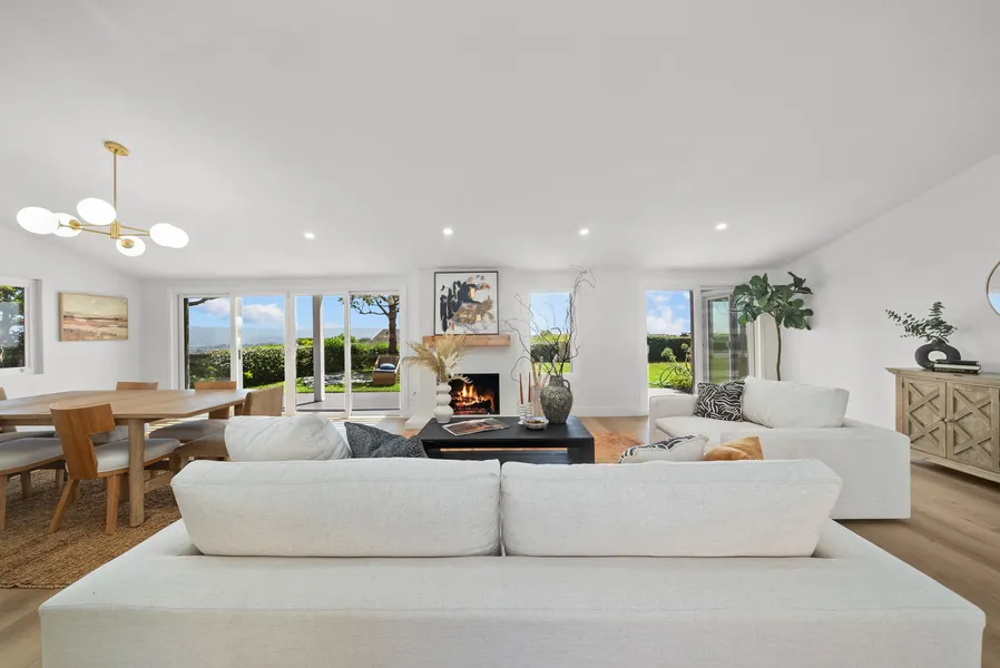 Experience Coastal Sophistication in Monarch Summit I Set high on a hill in the sought-after Monarch Summit I community, this fully remodeled, single-level 2-bedroom, 2-bathroom gem captures views of mountains, city lights, and the coastline. Enter through the private courtyard and step into an open, airy living space where large sliding doors flank a sleek, cozy fireplace with a wood mantel, filling the home with natural light. Oak-toned flooring enhances the warmth and sophistication throughout, while the living and dining areas seamlessly connect to the back courtyard—an inviting space to relax and enjoy the refreshing coastal breeze. The brand-new kitchen is both stylish and functional, featuring white shaker cabinets for ample storage, stunning countertops, and sleek floating shelves for convenience and display. State-of-the-art appliances make cooking a pleasure, while the open layout encourages social interaction—perfect for everyday meals and entertaining guests. The primary bedroom is a serene retreat, offering picturesque greenbelt and mountain views, abundant natural light, and sliding doors that open to the courtyard. The en-suite bath exudes luxury with a spacious walk-in shower with a bench, designer tiles, and a large oak vanity with dual sinks and ample storage. The second bedroom is equally inviting, with abundant light and sliding doors, while the fully renovated second bathroom maintains the home’s calming, neutral tone and thoughtful design touches. A brand-new HVAC system ensures year-round comfort, enhancing this home’s modern upgrades. Ideally located in a cul-de-sac, this home sits across the street from some of Monarch Summit I’s top amenities, including a pool, spa, and clubhouse. The peaceful community is surrounded by gorgeous ocean and mountain views, offering a tranquil yet convenient lifestyle. Enjoy close proximity to Dana Point Harbor, world-class resorts and golf courses, shopping centers, dining, parks, and scenic walkways. Move-in ready and designed for luxurious coastal living—don’t miss this rare opportunity to call Monarch Summit I home!