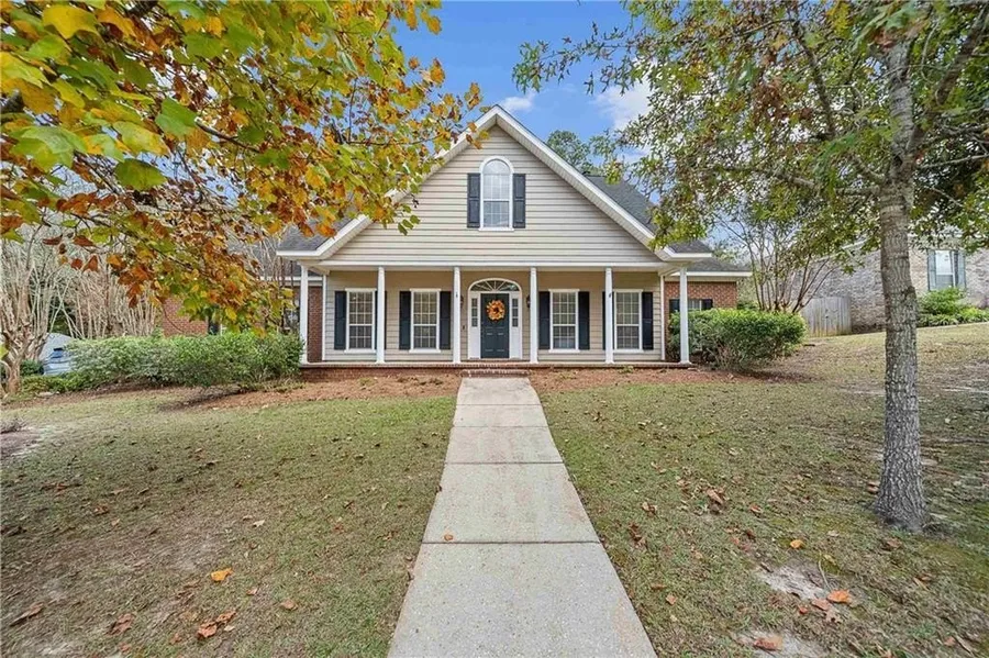 This home is neat, clean and beautifully updated! 5-bedroom, 2.5-bath home with over 3,000 sq. ft., with a sparkling POOL and oversized fenced backyard in a super convenient Spanish Fort location! Walk to school, 1 mile to the grocery store and dining on the Causeway, 8 minutes to Downtown Mobile. The spacious kitchen showcases warm quality wood cabinetry, gorgeous quartz countertops, and stainless-steel appliances, including a gas cook top. Enjoy multiple living areas with a formal dining room, cozy living room featuring a brick gas fireplace, and a bright SUNROOM overlooking the backyard and sparkling POOL. The first-floor primary suite offers an adjoining office or nursery and a spacious UPDATED bath with double vanities, jetted tub, separate shower, and dual walk-in closets. Upstairs includes 4 additional bedrooms, a large UPDATED hall BATHROOM, 5th bedroom also makes a great bonus/media room (current use). Additional features include walk in attic space, laundry/mud room with half bath, double garage w/additional work/storage space, and a Large FENCED BACKYARD with an additional fence around pool for added safety. Property goes beyond first fenceline and backs up to woods. You don't want to let this one get away! Buyer to verify all information during due diligence.