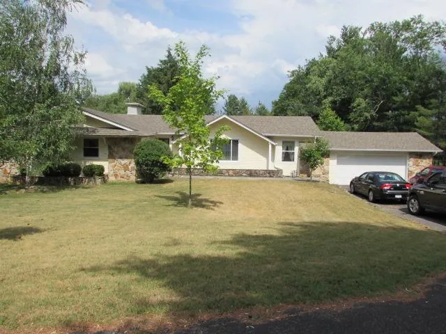 Den has a story rock fireplace with doors leading out back. Roof is about 5 years old. Home also has newer windows, doors and vinyl siding. Property has 2 garages upstairs and 1 below.