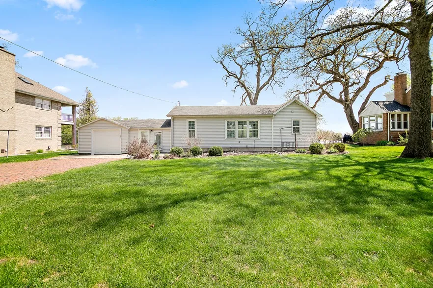 Welcome to riverfront living! This adorable ranch on the Kankakee River is in a prime, boatable location and offers breathtaking views with a beautiful backyard featuring both a patio and a deck - perfect for relaxing or entertaining. The brick driveway adds charm and curb appeal as you arrive. Step inside to a vaulted open-concept living area with a spacious living room and abundant windows on both the front and back, filling the home with natural light. The kitchen includes plenty of cabinet storage, generous counter space, an island with seating, and stainless steel appliances, all flowing into the dining area. A door off the living room/kitchen area leads directly to the deck, creating a seamless indoor-outdoor experience. Gorgeous hardwood floors run through the main living space and bedroom. The bedroom features a cedar-lined closet and hardwood floors. The main floor bath includes a tub/shower combination. The partially finished basement adds functionality with a family room area, a full bath with walk-in shower, laundry area, and utility access. A flexible foyer space includes a coat closet and sliders that open to the patio. Completing the home is a one-car attached garage. Furnace, A/C, and windows are newer. Don't miss this well-maintained riverfront gem in an ideal location for boating and year-round enjoyment!