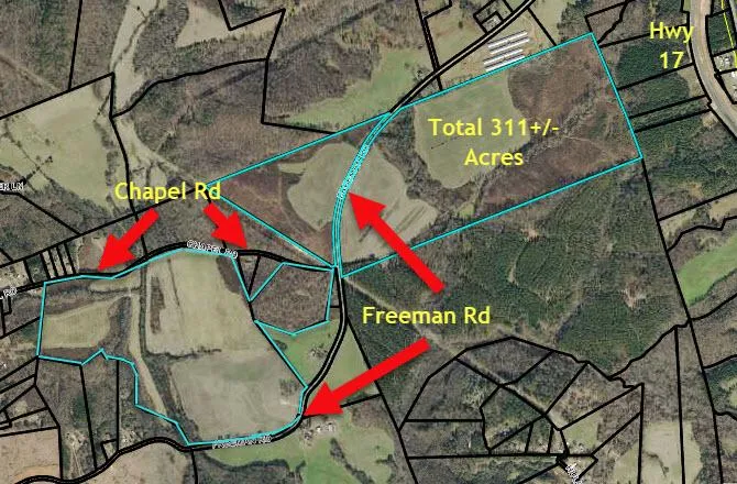 Research Parcel InformationFrom I-85, take the Lavonia Exit north on 17 to L just after fly-over bridge (over rr) down to stop. When you cross old 17 you are on Freeman Rd, property is marked on both sides of Freeman or down Chapel Rd.