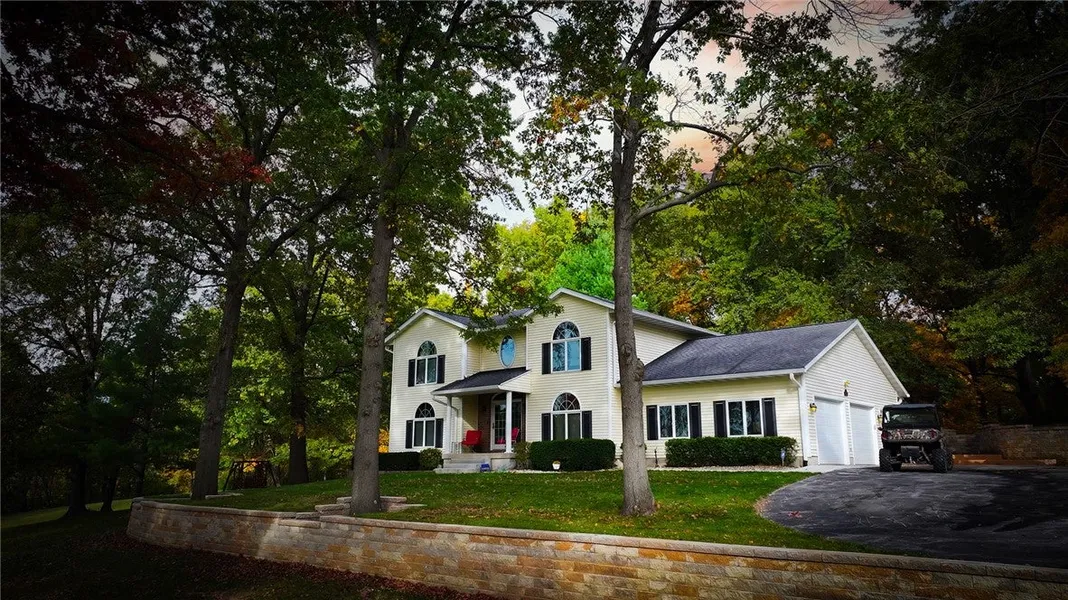 PRICED BELOW APPRAISAL! Hunt on your own 17.89 wooded acres overlooking Lake Decatur and framed with majestic oak trees in a small town school district. Too many updates to list, but here are a few: new machine shed/6 car detached garage with propane heat, new drive, new patio with hot tub, new sidewalks & front steps, new front & back stone retaining walls, city water (most outside spigots connected to well) plus new gutters! Step inside a remodeled interior & even more updates including new soaring gas fireplace with remote start, a kitchen thoughtfully designed with quartz counter tops, double oven and pantry! A radon remediation system is already in place along with 2 new air-conditioning units. Main floor master bedroom suite features trayed ceiling. The private master bath features a jetted tub & separate shower plus walk-in closet and laundry. Make memories while hunting turkey & deer or four wheeling on your own acreage!