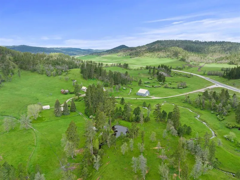 Nestled in the heart of the Bear Lodge Mountains in the Black Hills of Wyoming and situated on 250.39 acres of fully fenced land, this property offers a unique opportunity for outdoor enthusiasts, nature lovers, ranching and hunting. The property is surrounded by thousands of acres of the Black Hills National Forest. Hunting enthusiasts will be delighted by the outstanding opportunities available on the property itself, as well as in the adjacent National Forest. Mule Deer, Whitetails, Elk, and Merriam's Turkey are just a few examples of the abundant wildlife that can be found in the area. The property has several large areas of flat, open ground for livestock and/or equine uses. Horse enthusiasts will appreciate the large original barn that can provide shelter for livestock and plenty of room to store farm equipment to keep them out of the elements and convenient proximity to the houses. Maybe the barn would best fit your needs if you wanted to convert to an event venue. The possibilities are endless with this picturesque piece of land. This ranch boasts a diverse landscape with rolling hills, heavily treed mountain sides & open meadows. Mature Ponderosa Pines, Cottonwoods, Oak, Ash, and Aspen trees are abundant. The ranch is conveniently located only 9.5 miles from Cook Lake, a popular destination for fishing, camping, swimming, and kayaking. Over a mile of Little Beaver Creek flows year round through the property and there is a small pond because of it.