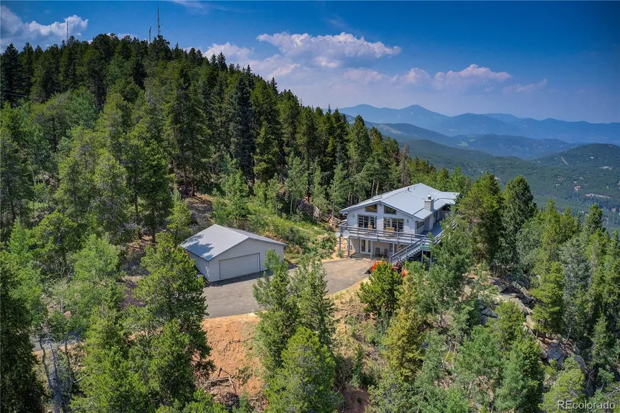 Price Improvement for $750,000 as is. Welcome to your perfect Conifer Mountain home. Drive along the newly paved driveway, which is South facing, from the County maintained roadway. Pass the gorgeous aspen grove that lines the driveway leading to a perfectly placed and private home with amazing panoramic views of the mountains and valley. View Downtown Denver from your top deck. Park your vehicles and store all of your extra items in your two car garage with extra storage space. Let your animals enjoy the beautiful snake rail fence pasture built by hand and the newly installed barn with electricity. Sit in your peaceful sunroom filled with large windows and pine paneling that will help you relax and unwind. Entertain guests on your large deck with views of all of the stars in the night sky and a sea of lights across the valley. Sleep soundly to the quiet nights and the relax to the sounds of chirping birds and nature. Enjoy the change of the seasons from your living room home windows as the leaves change from a luscious green to beautiful shades of red, orange, and yellow in autumn. Start a glowing and lovely fire in you're moss stone fireplace with a full stock of lumber chopped and stacked just for you. Enjoy school bus pick ups, drop offs, and mail deliveries. Allow yourself to escape into a peaceful oasis everyday away from the big city or even the town shopping center, which is only a short drive away. Allow yourself to enjoy and explore your 10 acre lot, which surrounds your home, allowing for the perfect amount of privacy. Treat yourself to the ultimate mountain dream. Included in this home is the couch Sectional in the living room, grand desk in desk room, rugs on the deck, shelving in garage, and standing cabinet in the mud room. Also included, is a new UV light water filtration system, less than a year old paved drive way, new sun room, fenced in animal pasture and New Barn / Shed, and year old roof snow stops / guards.