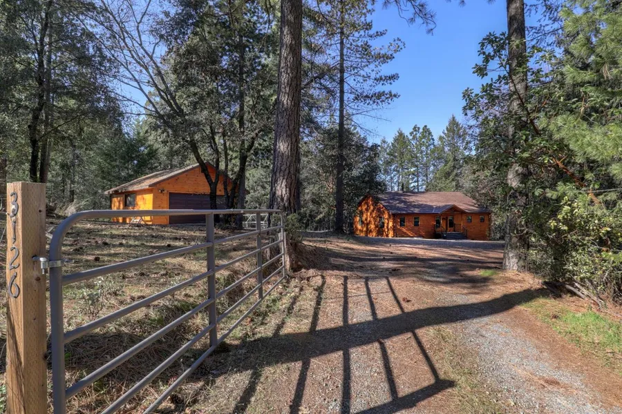 This home captures the best of what country living offers. Enjoy a custom 4000 sq ft, 5 Bdrm, 3.5 Ba home on approx. 5.83 acres with an abundance of beautiful, mature oak trees, pines & madrones. The exterior log cabin siding adds to the beauty & feel of this country home. Enjoy the open concept floor plan with imported knotty pine wood cabinets & rustic wood countertops throughout. The great room is the heart of the home with cathedral ceiling & wood burning stove for those chilly nights. Off the kitchen is a large covered back deck which also has impressive cathedral ceiling & is a wonderful outdoor space to relax & enjoy the views. The Master retreat, two add'l Bdrms, Bath & laundry complete the main floor. The lower level is for entertainment, with a large custom-built bar, game room/media area, 4th & 5th Bdrm, a 3rd Ba, bonus room & 2nd laundry room. Home has radiant heat flooring & plenty of storage or possible multigenerational living option. The two-car garage incl. 1/2 Bath