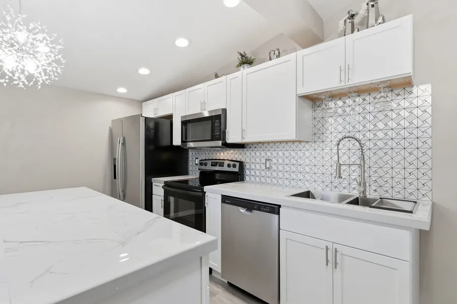 Complete Remodeled home in a great Southside of Des Moines. Step into this charming 3-bedroom home featuring vaulted ceilings that create an open, airy feel throughout the living, dining and kitchen areas. The fully renovated kitchen with all-new stainless steel appliances and stylish finishes. The updated bathroom includes a dual "his and her" sink vanity for added convenience. Each bedroom offers generous space, and the large, privacy-fenced back yard is perfect for relaxation or play. Enjoy outdoor entertaining on the covered front patio or the inviting side deck-ideal for gatherings or quiet evenings at home. Many more upgrades like new roof, windows, siding, HVAC and much more. This home is turn key. Ready for you to move in and enjoy!