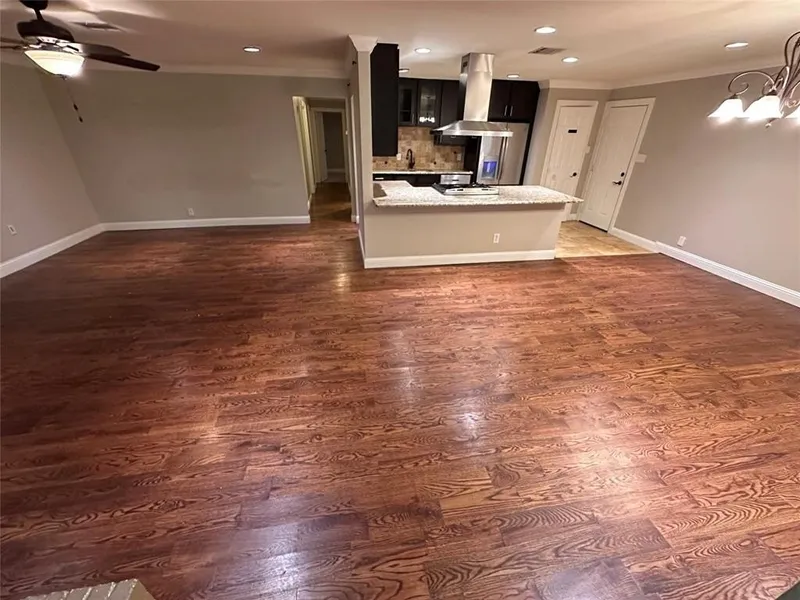 Beautiful ranch style home with an open floor plan and massive backyard! Kitchen features a large eat in peneinsula with plenty of room for gatherings. Spacious living room area features a large brick fireplace, wood floors and large floor to ceiling windows that boast tons of natural light. Back yard faces an alley which offers loads of privacy to the new owners. Home is located on a dead end block so traffic is kept to a minimum.